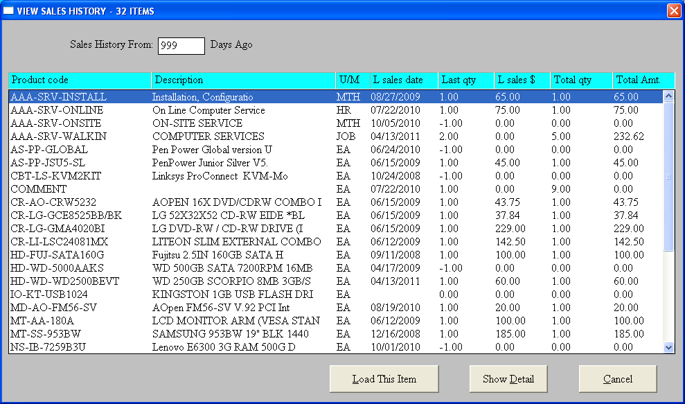 - 從銷售紀錄以一按鍵同時載入多項貨品